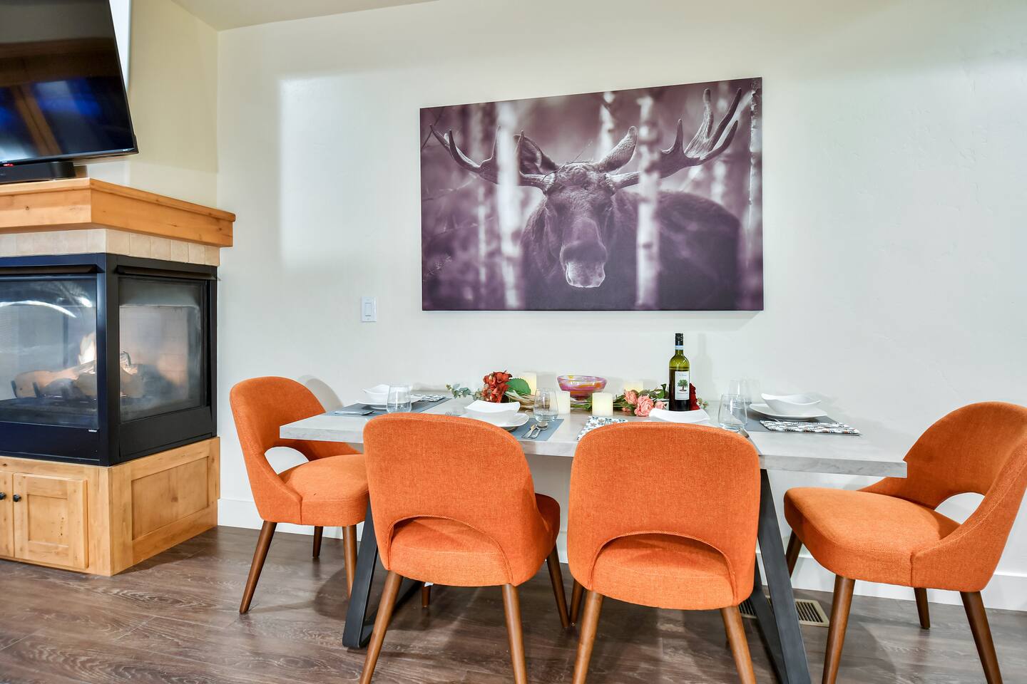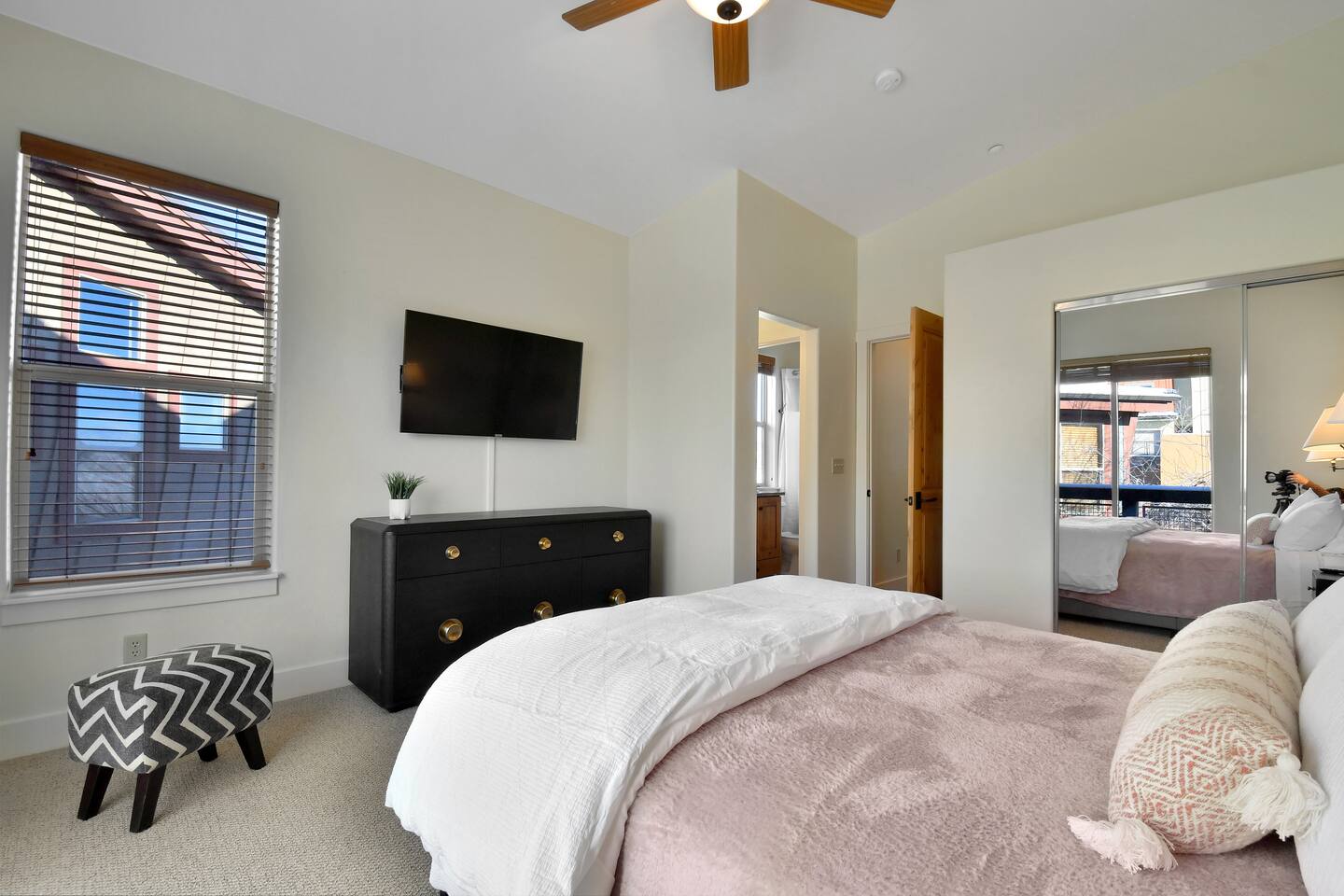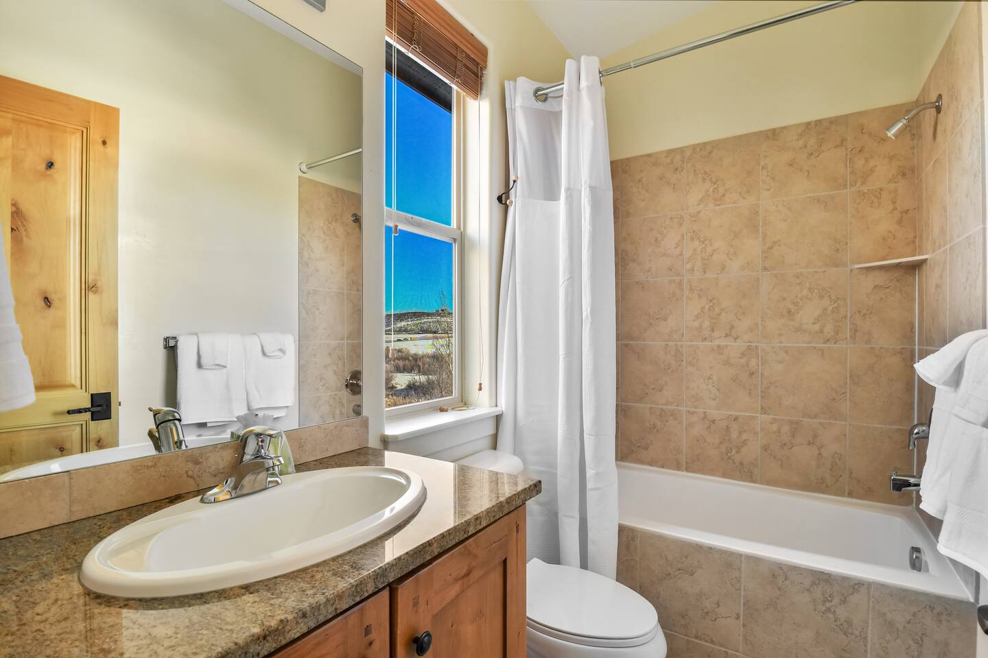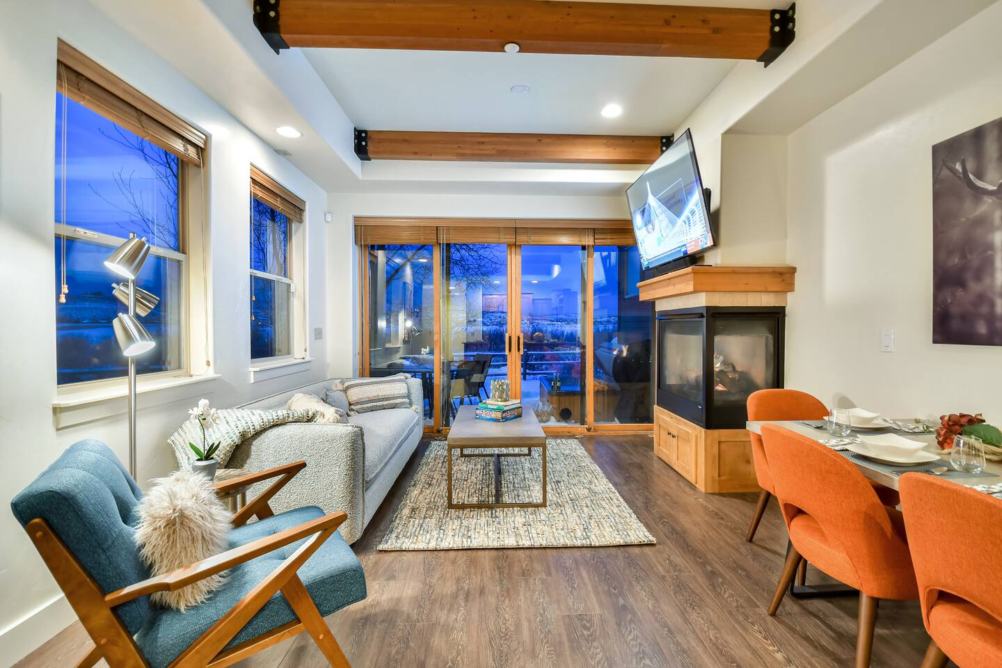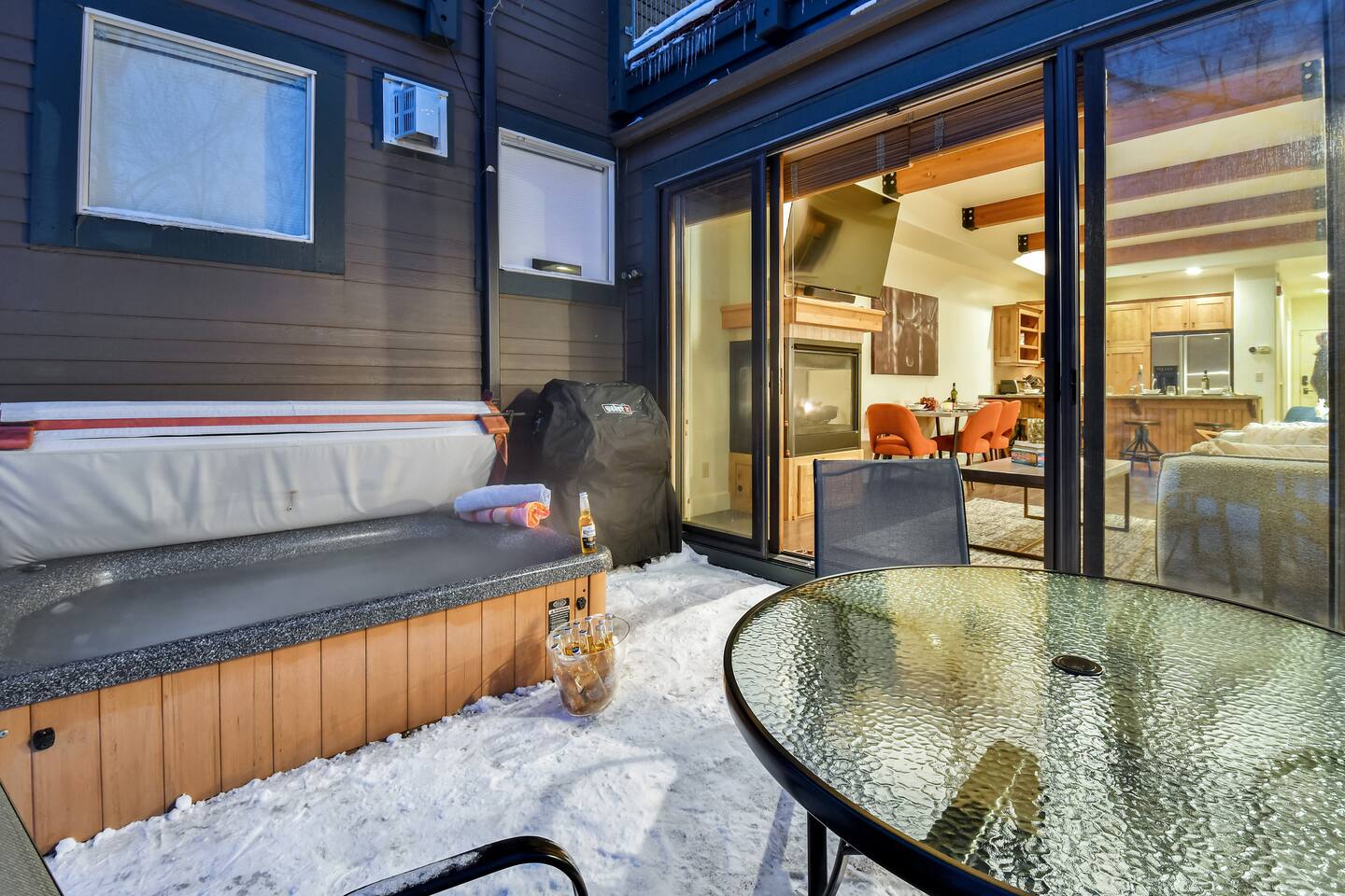 Recently purchased and newly furnished this spacious townhome accommodates 7. If more room is needed a similar size rental unit (#35) is available next door and can be offered at a discount (15%). Amenities include Keyless entry, 65’ & 55’ Smart TVs (2021), Sonos soundbar/speakers, Weber Grill, Hot tub, boot & glove warmer/dryer, broadband internet (200Mb), cable TV (125 channels), and premium streaming services (Showtime, HBO, Netflix, Prime, & Disney) The townhouse also has an attached garage that will fit a full size SUV although no car is needed at this location unless truly desired. It is walking distance to dozens of restaurants, grocery store, and shops within Kimball Junction. It is also a 1 minute walk to the bus stop for the free shuttle to Old Town, Historic Main Street, Utah Olympic Park, and 3 world class skis resorts - Canyons, Park City, and Deer Valley. Download the High Valley Transit app and get free “On Demand” micro-transit inside Kimball Junction and the Canyons Resort. THE LAYOUT You will enter the home from the garage and into the main living area - the living room, dining area, kitchen and first floor bathroom with shower. The bright & open floor plan with floor to ceiling windows overlooking Swaner Nature Preserve! Living Room: This comfortable and cozy space offers a sofa and chair, gas fireplace, 65” Smart TV with Sonos sounder/speakers and a private deck with stunning views and a hot tub. Kitchen: Fully equipped kitchen with all the utensils needed for your homemade meals. There are stainless steel appliances and granite counters, including kitchen bar seating for four. Dining Area: With seating for up to six (w/2 pull up bar stools) Bedrooms/Bathrooms: Master Bedroom (upper level) – King bed, 55” Smart TV with Sonos soundbar and private balcony overlooking Swaner Preserve. There is a full private bath with dual granite counter sinks and a tile shower. Bedroom 2 (upper level) – Queen bed, 55” Smart TV with Sonos soundbar and private deck and private bath with a tub/shower combo. Bunk room (upper level) - Upper level loft with a triple bunk bed. Full size bunk beds are perfect for children, grand-children, and grown adults alike. Hot Tub: Yes, private on main level deck Laundry: Stackable washer/dryer in upper level hall closet A/C: Central I am available to FaceTime to answer any questions in person. This home is in Park City, in Kimball Junction off of I-80.