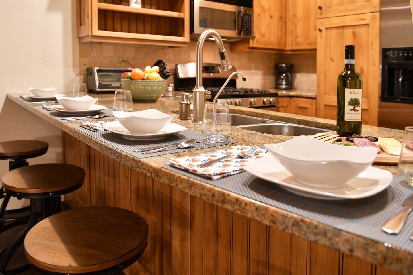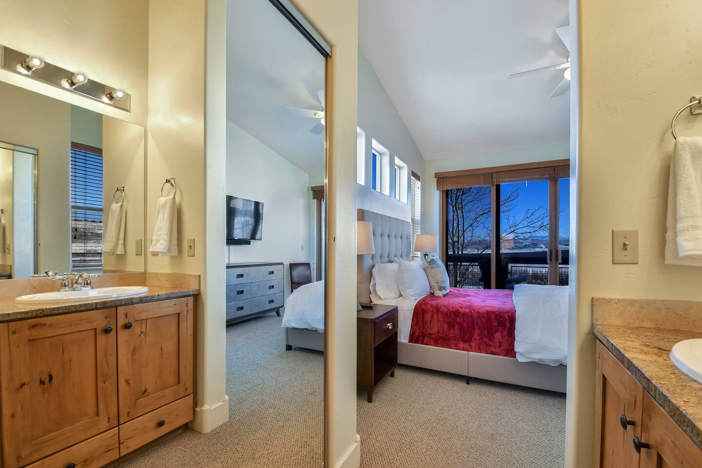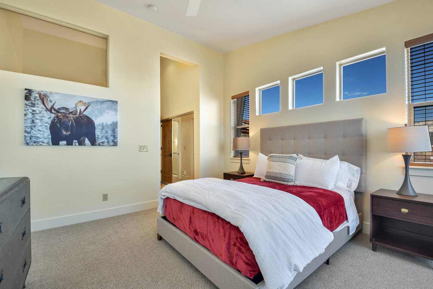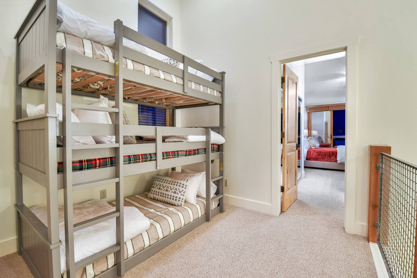 One thing to note is the bunk room is a converted loft. Guest walk through the bunk room to access the third guest room which houses a queen bed. For most people, this set up suits siblings, families, and relatives extremely well. However, if you are three adult couples, there may be better layouts for your group.